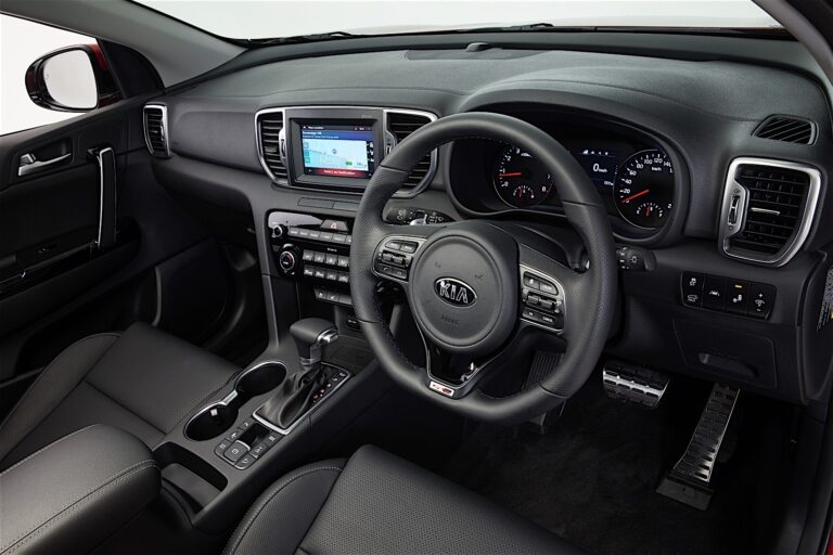 Gdy kabina poprzedniego Sportage była skupiona wokół wyraźnie zdefiniowanego centralnego kokpitu o pionowym designie, nowy model cechuje się poziomymi liniami, aby skuteczniej podkreślić szerokość wnętrza i wygenerować wrażenie przestronności oraz sportowości.