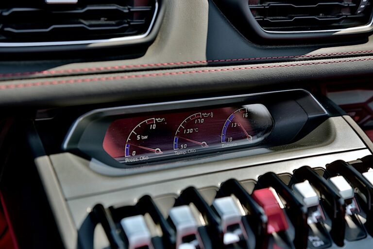 Innowacyjny kokpit dominuje we wnętrzu. Wyświetlacz TFT o przekątnej 12,3 cala można skonfigurować w kilku trybach i oferuje kierowcy wszystkie kluczowe informacje w wirtualnej reprezentacji, w tym opcjonalną mapę nawigacyjną. Wyświetlacze są ostre jak brzytwa, olśniewające i niezwykle szczegółowe: na przykład wirtualna wskazówka obrotomierza jest przeliczana 60 razy na sekundę, co zapewnia, że płynie ona całkowicie płynnie nawet przy pełnym przyspieszeniu. Wyświetlacz TFT jest częścią nowego standardowego systemu informacyjno-rozrywkowego Lamborghini Infotainment System II.