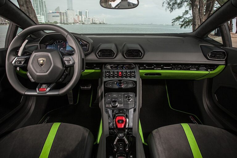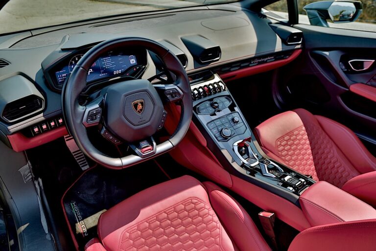 Kierowca może sterować funkcjami wyświetlacza za pomocą przycisków na kierownicy: jedynymi innymi elementami sterującymi są łopatki do zmiany biegów. Przycisk do otwierania dachu i tylnej szyby znajduje się na konsoli centralnej, podobnie jak przycisk uruchamiania silnika V10, umieszczony pod czerwoną osłoną jak w wojskowym samolocie odrzutowym. Elektryczne fotele Huracana Spydera wyposażone są w jednostkę ECU, która zapewnia, że wszystkie ruchy odbywają się bez kontaktu z mocą silnika.