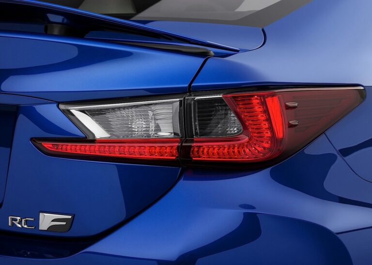 Lexus zaprojektował RC F tak, aby zostawiał wyraźny nocny ślad, gdy przejeżdża – co będzie się działo często. Podobnie jak reflektory, tylne lampy kombinowane pokazują charakterystyczny motyw kształtu L Lexusa. Jednak zamiast po prostu wbudować motyw jako element graficzny w jednostkę lampy, powierzchnia została wypukła, tworząc trójwymiarowy efekt „L”.