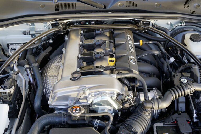- Silniki benzynowe z bezpośrednim wtryskiem SKYACTIV-G są usytuowane wzdłużnie i specjalnie dostosowane do MX-5.