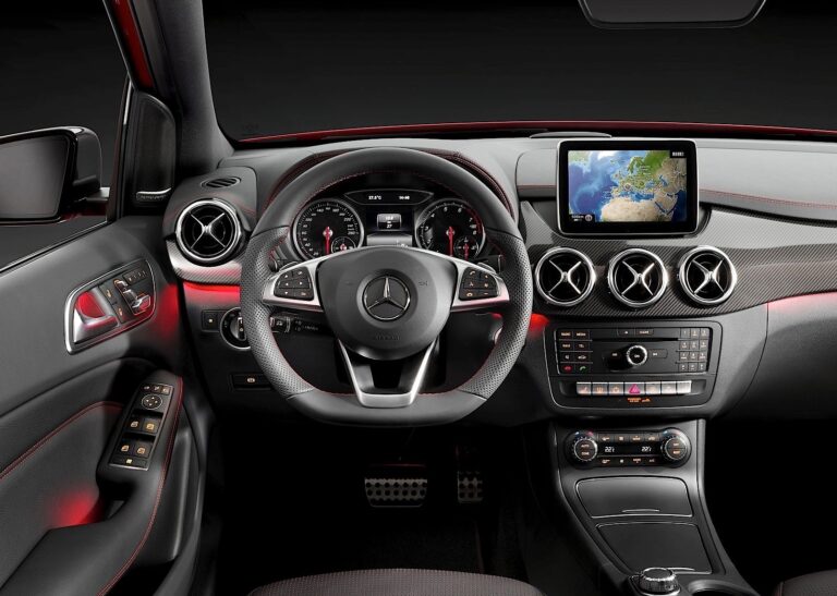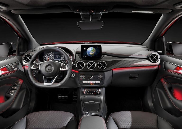 Wysokiej jakości, funkcjonalne wnętrze podkreśla premium jakość B-Class. Lifting nadaje pojazdowi bardziej ekskluzywny i nowoczesny charakter oraz zwiększa możliwości personalizacji. Mercedes-Benz wprowadził szereg wysokiej jakości detali w B-Class, takich jak duży, wolnostojący wyświetlacz jednostki centralnej, który teraz jest większy, o przekątnej do 20,3 cm (8 cali), oraz stylowy układ wskaźników na desce rozdzielczej. Można wybierać spośród 12 kolorów podświetlenia ambientowego, co pozwala na tworzenie różnych nastrojów.