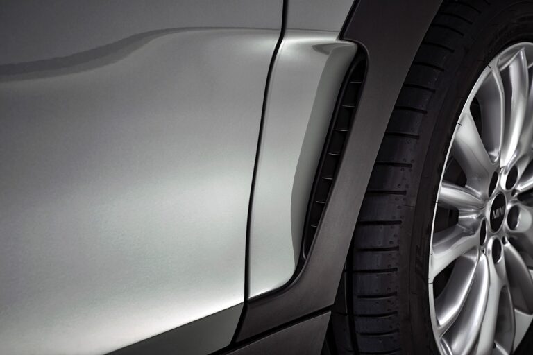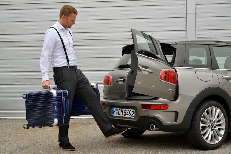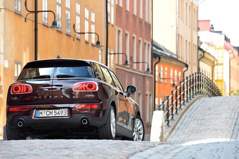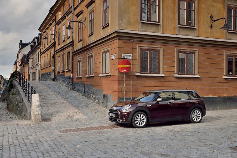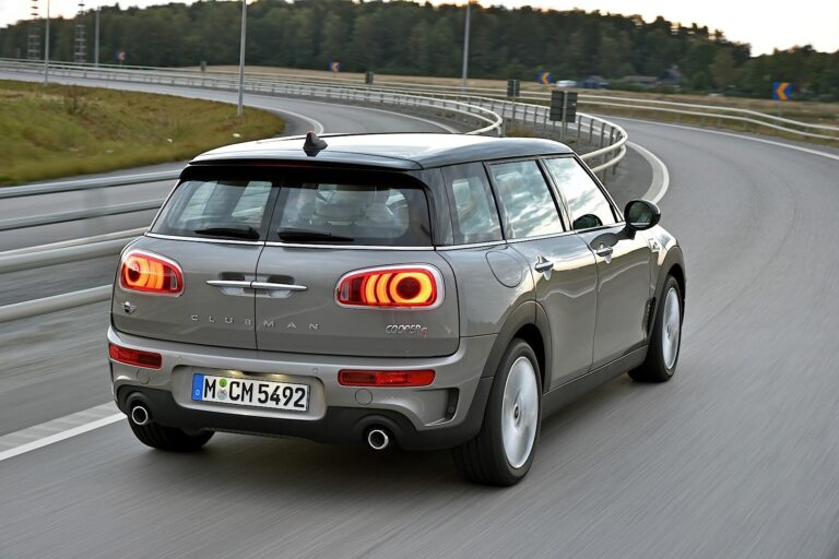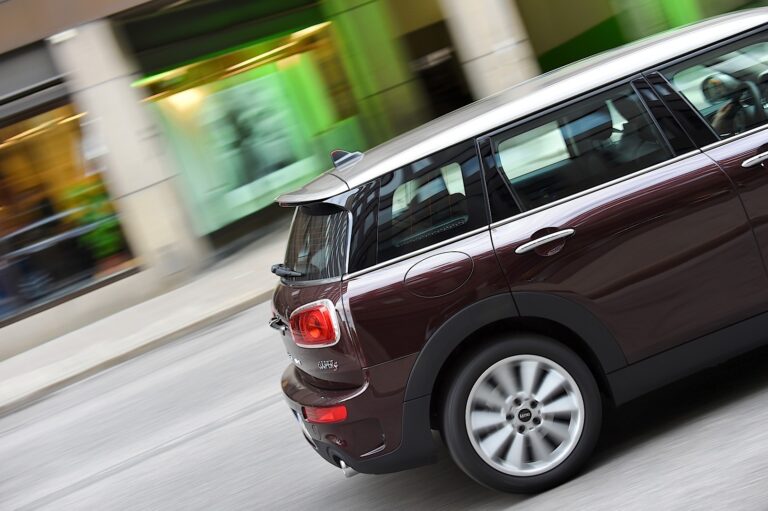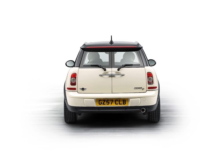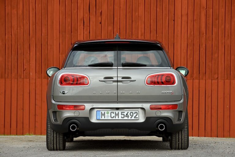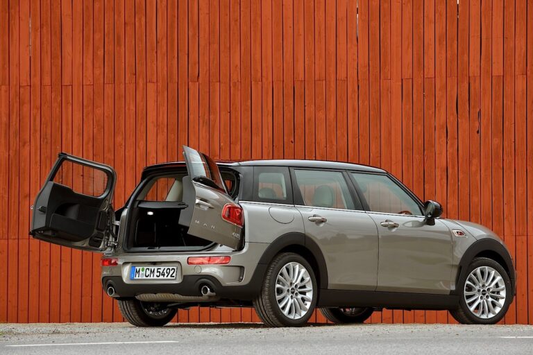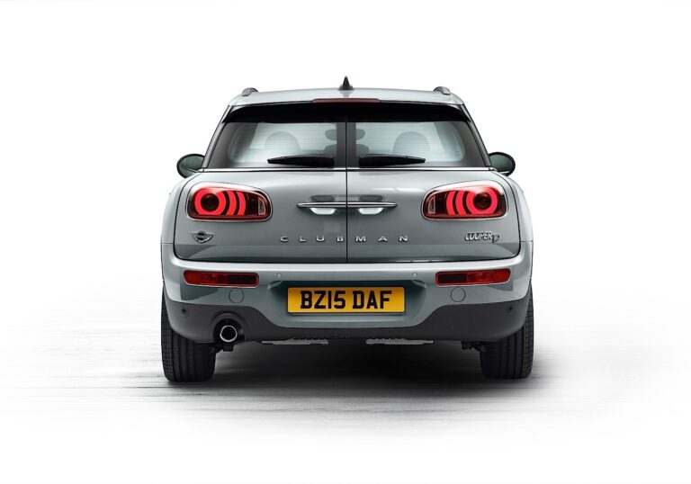 Z przodu, charakterystyczny styl MINI objawia się w okrągłych reflektorach otoczonych chromowanymi ramkami, heksagonalnym grillem oraz szerokim dolnym wlotem powietrza, co podkreśla jego solidny charakter. Choć przód pojazdu może być atrakcyjny, kluczowym elementem MINI Clubman są tylne drzwi dzielone.