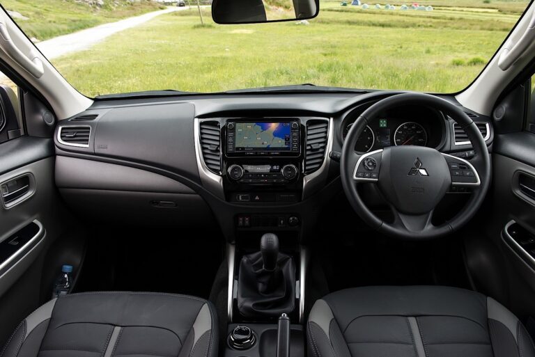 W środku Mitsubishi starało się stworzyć kabinę przypominającą SUV, odpowiednią do codziennych podróży. Niemniej jednak materiały użyte w desce rozdzielczej, panelach drzwi i konsoli środkowej przypominały te z lekkich pojazdów użytkowych. Z drugiej strony, w zależności od rynku i opcji, klienci mogli wyposażyć pojazd w przyciski na kierownicy oraz kolorowy ekran dotykowy dla systemu multimedialnego umieszczony na górze konsoli centralnej, obsługujący Apple CarPlay oraz Android Auto. Przed kierowcą znajdował się przejrzysty zestaw wskaźników z dwoma szerokimi tarczami dla obrotomierza i prędkościomierza, flankującymi czarno-białe wyświetlacze LCD, które pokazywały dane z komputera pokładowego. Z tyłu, kanapa miała niemal prostą tylną część, co sprawiało, że długie podróże były niewygodne dla wysokich osób. Z tyłu, na podłodze ładunkowej, L200 zapewniał wystarczającą przestrzeń ładunkową dla potrzeb większości rolników w Europie. Z ładownością wynoszącą jedną tonę, L200 okazał się wydajny w większości zadań lekkiego pickup’a.
