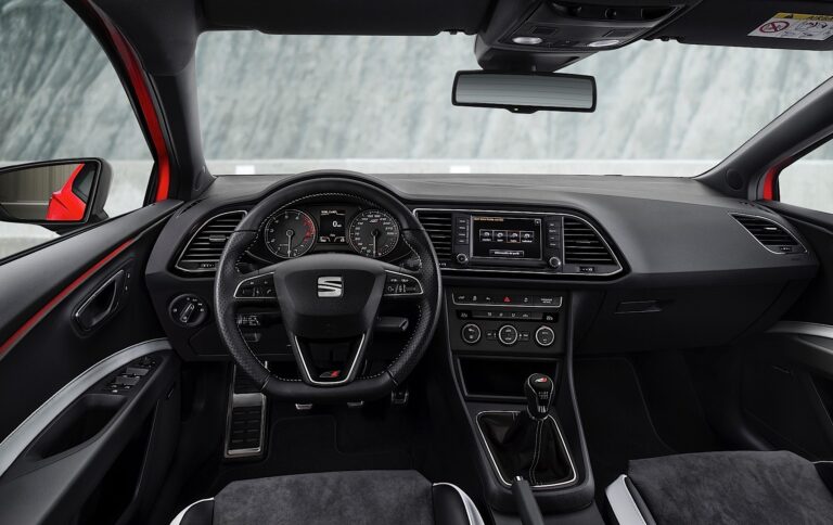 Najlepsze sportowe fotele z Alcantary, kierownica Cupra oraz system medialny Plus z kolorowym wyświetlaczem dotykowym o przekątnej 6,5 cala to standardowe elementy wnętrza oprócz bogatego podstawowego wyposażenia Leona FR. Szczególną cechą wnętrza Cupra jest podświetlenie ambientowe. Diody LED w panelach drzwi podkreślają kontury designu wnętrza i dodają poczucia luksusu w kabinie pasażerskiej. Jednocześnie, podświetlenie ambientowe oferuje pasażerom lepszą orientację oraz jeszcze większe poczucie przestronności. Kolor diod LED można dostosować za pomocą profilu jazdy Cupra – w trybie Cupra świecą na czerwono, w ustawieniu standardowym na biało.