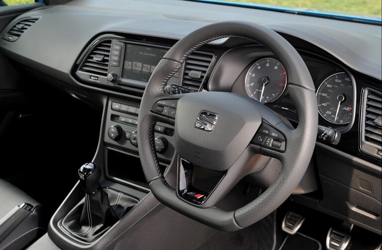 Wnętrze koncentruje się na sportowej kierownicy Cupra w unikalnym designie z łopatkami do zmiany biegów w opcjonalnej skrzyni DSG, a także na sportowych fotelach głównych wykonanych z czarnego Alcantary z białymi przeszyciami. Dostępna jest również pełna skórzana tapicerka w czerni, również z białymi przeszyciami. W przypadku ekstremalnej przyczepności bocznej, oferowane są opcjonalne fotele kubełkowe. Pedaly i progi wejściowe wykonane są z aluminium.