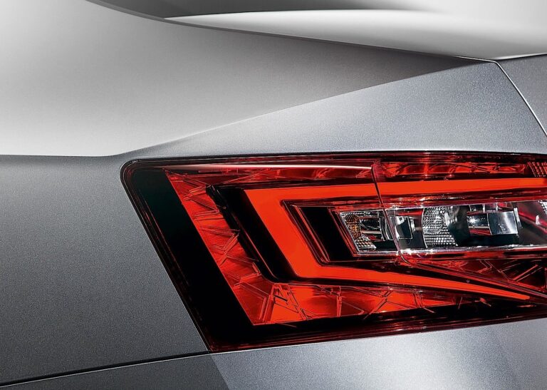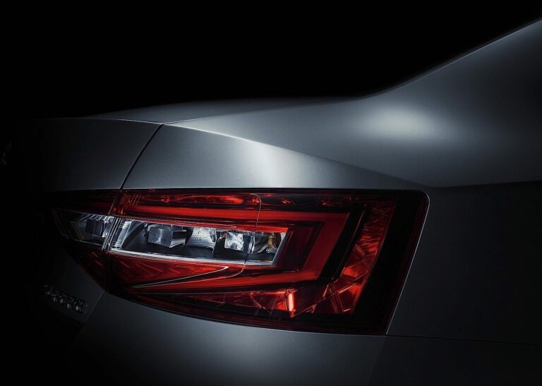Tył nowej Skody Superb jest pewny siebie i mocny. Występuje tu silny nacisk na poziome linie, a kontury są opływowe i czyste. Dwuczęściowe, szerokie i wąskie światła tylne świecą standardowo technologią LED i wyraźnie akcentują charakterystyczne C-kształtne światła, znane z Skody. Z jednoczesnym korzyścią dla tylnych świateł są dodatkowe efekty dzięki kryształowym elementom. Ostry, poziomy szew na klapie bagażnika nadaje tyłowi dodatkowy charakter.