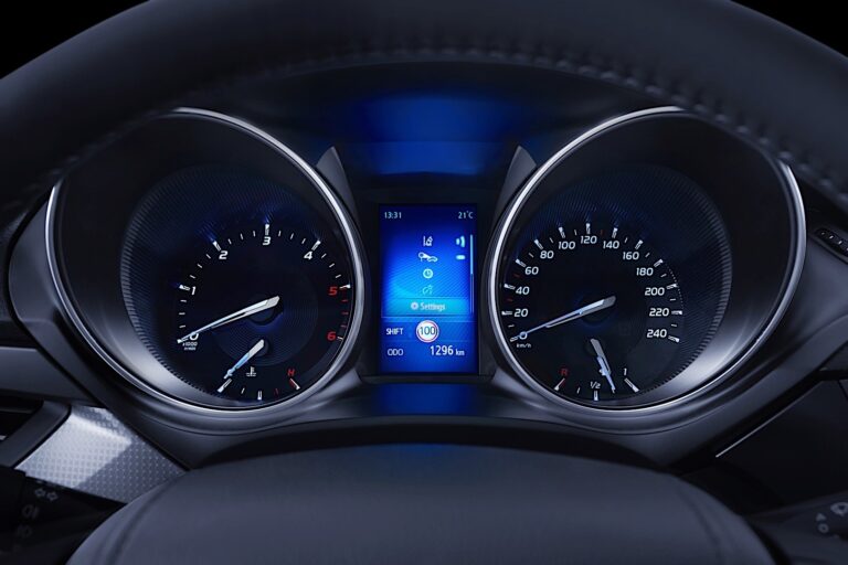 Deska rozdzielcza podzielona jest na dwie części. Górny element o pełnej szerokości eksponuje konsolę z tubowymi wskaźnikami obrotomierza i prędkościomierza po obu stronach dużego, 4.2-calowego kolorowego wyświetlacza TFT (w wersji średniej).