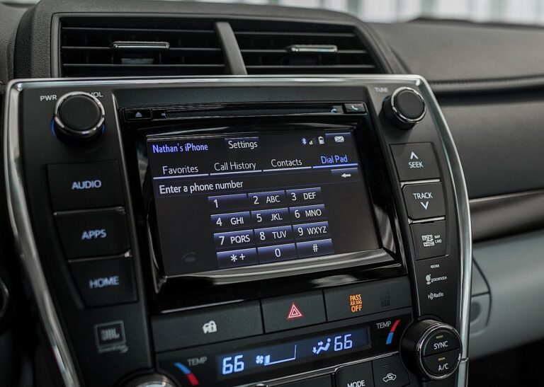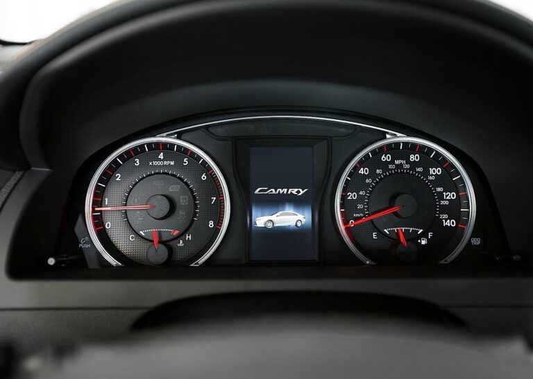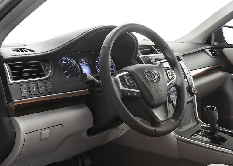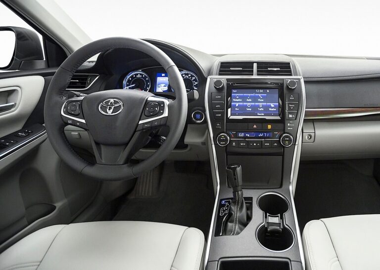 Kabina Camry z 2015 roku oferuje intuicyjną elektronikę pokładową i wyświetlacze, które pomagają zredukować stres i rozproszenie uwagi kierowcy. Panel instrumentów posiada nowy 4.2-calowy ekran TFT, który znajduje się między trójwymiarowymi wskaźnikami Optitron w modelach SE, XLE i XSE. Animacja kolorów na ekranie wyświetla szeroki zakres funkcji pojazdu i współpracuje z systemem multimedialnym, aby pokazywać audio, nawigację, ostrzeżenia i komunikacje.