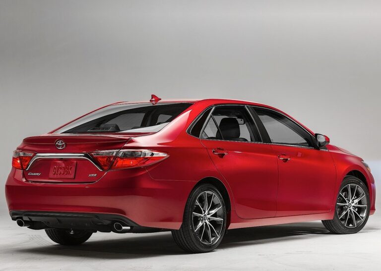 Nowe, smukłe reflektory uzupełniają agresywny przód, podczas gdy wskaźniki kierunkowskazów i LED DRL są zintegrowane dla eleganckiego wyglądu. Camry z 2015 roku oferuje oświetlenie zewnętrzne z dostępnymi LED-owymi światłami mijania i drogowymi oraz automatycznym poziomowaniem. Tylne lampy Camry delikatnie wpasowują się w zwężający się metal na tylnej części samochodu. Dekoracyjny element łączy lampy tylne przez pokrywę bagażnika, podkreślając nową sportową sylwetkę.