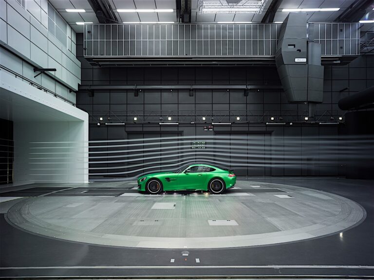 Inżynierowie aerodynamiki i projektanci współpracowali ze sobą intensywniej niż kiedykolwiek podczas rozwoju nowego AMG GT R. Idiom designu AMG „Dynamiczna Obecność” stanowi podstawę znacznie bardziej ekspresyjnego ogólnego wyglądu i bardzo wyraźnego stylu. Forma podąża za funkcją, a funkcja wspiera formę: Wszystkie elementy mają wewnętrzną korzyść techniczną i przyczyniają się do poprawy dynamiki jazdy, a eksperci od aerodynamiki zrealizowali życzenia projektantów. Ta współpraca doprowadziła nawet do innowacji, która obecnie ma status patentowy.