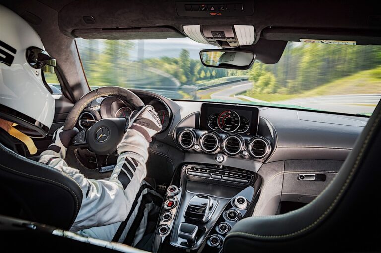 Aby stworzyć kierowcy nowego AMG GT R idealne warunki do jazdy, wnętrze również zostało silnie zainspirowane motorsportem. Ekstremalnie lekkie, ręcznie regulowane fotele sportowe AMG pokryte skórą nappa i mikrofibrą DINAMICA są standardem. Oferują one niezbędne wsparcie boczne nawet podczas ekstremalnych manewrów. Alternatywnie, sprawdzone fotele sportowe AMG można zamówić opcjonalnie bez dodatkowych kosztów. Opcjonalne żółte pasy bezpieczeństwa, tarcze z żółtymi akcentami, pakiet wykończenia wnętrza AMG Piano Lacquer oraz specjalne elementy sterujące, w tym te do nowego AMG TRACTION CONTROL, podkreślają unikalną pozycję nowego AMG GT R.