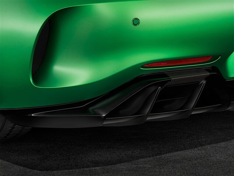 Tylna część również ma liczne, wyraźne innowacje: nowe aluminiowe boki poszerzają tył AMG GT R o 57 milimetrów w sumie, tworząc przestrzeń dla większych kół 20-calowych oraz szerszego toru. Oba te rozwiązania poprawiają przyczepność, pozwalając na wyższe prędkości w zakrętach.