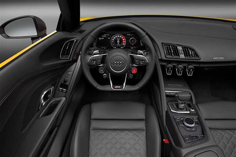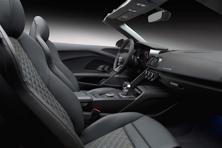Audi R8 Spyder V10 jest niemal w całości ręcznie wykonany w dedykowanej fabryce „Audi Böllinger Höfe” w pobliżu Neckarsulm. quattro GmbH nieustannie buduje swoje know-how w zakresie małych produkcji. Charakter manufaktury działań produkcyjnych daje szerokie możliwości dostosowania ich do specyficznych życzeń klientów. Fotele sportowe dla kierowcy i pasażera są standardem – opcjonalnie tapicerowane w doskonałej skórze w diamentowym wzorze. Alternatywnie Audi może dostarczyć fotele kubełkowe dla jeszcze lepszego wsparcia bocznego.