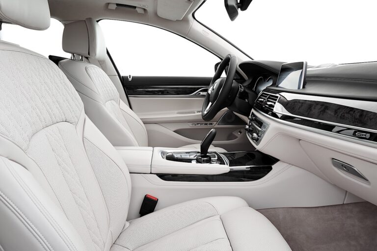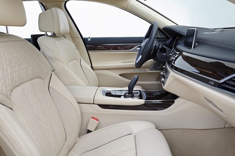Elementy sterujące na konsoli środkowej – podobnie jak listwy wykończeniowe wnętrza – są otoczone delikatnymi powierzchniami z drewna lub aluminium. Zarówno listwy wykończeniowe, jak i chromowane obramowania panelu wskaźników są wykonywane indywidualnie dla każdego samochodu; ich wymiary są zatem dopasowane do najbliższego milimetra. Standardowe i opcjonalne elementy wyposażenia, zaprojektowane w celu zapewnienia luksusowego poczucia dobrostanu z tyłu nowej serii BMW 7, wyróżniają się starannie dobranymi materiałami oraz jakością wykonania definiowaną przez precyzyjne rzemiosło. Ponadto przestronność wnętrza podkreśla pozioma struktura powierzchni, która przechodzi przez wykończenia drzwi. Klienci mogą wybierać spośród pięciu wariantów kolorystycznych standardowej tapicerki Dakota, a opcjonalna tapicerka skórzana Nappa dostępna jest w sześciu kolorach.