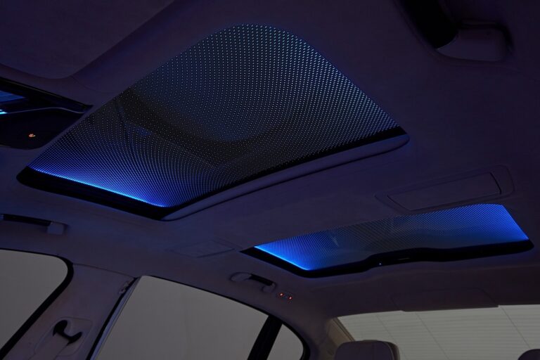 Przedłużone wersje nowej serii BMW 7 będą również dostępne z panoramicznym dachem Sky Lounge, który również jest unikatowy w segmencie luksusowych sedanów. Gdy zapada zmrok, światło emitowane z bocznych modułów LED równomiernie skierowane jest na powierzchnię szklaną, gdzie trafia na nadrukowaną grafikę, tworząc atmosferyczny motyw przypominający gwiaździste niebo.