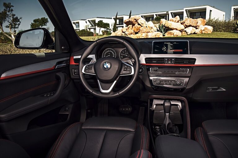 Dzięki doskonałemu połączeniu projektu kokpitu skoncentrowanego na kierowcy i elegancji kształtowanej przez przestronne powierzchnie, wnętrze nowego BMW X1 wpisuje się w klasyczny szablon stylu pojazdów Sports Activity Vehicle. Płaskie powierzchnie deski rozdzielczej i kontrole centrum konsoli skierowane w stronę kierowcy pomagają mu utrzymać nienaganną kontrolę nad postępem samochodu. Kontrolki znajdujące się w dolnej części konsoli centralnej otoczone są wysokiej jakości powierzchniami i są odgrodzone od strony pasażera nowo zaprojektowanym paskiem. Zespół wskaźników, składający się z dwóch okrągłych wskaźników i otoczony małym wzniesieniem, również pomaga kierowcy skoncentrować się na przyjemności z jazdy.