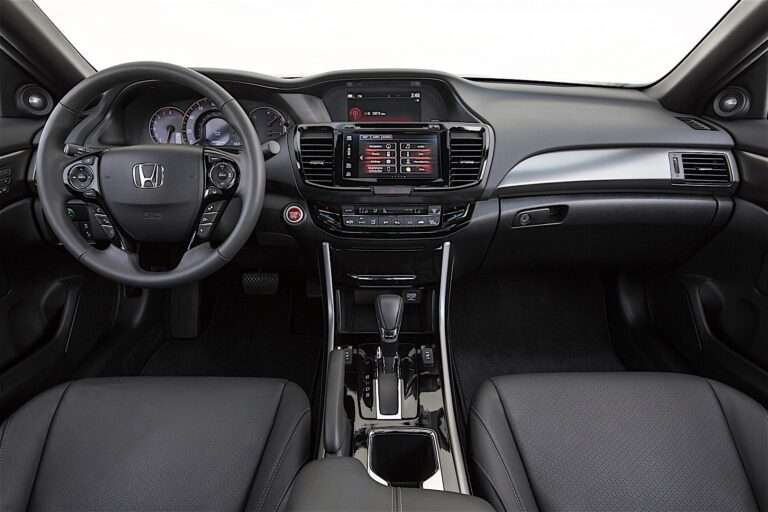 Aby dać Accordowi przewagę w niezwykle konkurencyjnej klasie średniej, zaprojektowano zupełnie nowe wnętrze dla dziewiątej generacji Accorda, wprowadzając poziom luksusu i rzemiosła, jakiego jeszcze nie było w Accordzie. Dostępne w kolorach czarnym, szarym i kości słoniowej, wnętrze Accorda łączy przytulność z imponującym zakresem standardowych i dostępnych technologii. Ergonomicznie zaprojektowane siedzenia oraz funkcje, takie jak dwustrefowa klimatyzacja, zwiększają komfort pasażerów w przestronnej kabinie, a obsługa i umiejscowienie przycisków i wskaźników pomagają kierowcy czuć się pewnie i kontrolować pojazd. W 2016 roku wprowadzono nowe akcenty w stylu drewna, włókna węglowego i błyszczącego czarnego pianina dla Sedana oraz akcenty w błyszczącej metalowej czerni i błyszczącego czarnego pianina dla Coupe. Wnętrza Accorda Sedan i Coupe oferują przestronność dla pięciu pasażerów, elegancki styl oraz wysokojakościowe wykończenie. Obszerny bagażnik ma również płaską podłogę i dużą przestrzeń ładunkową.