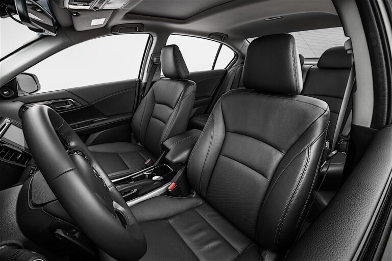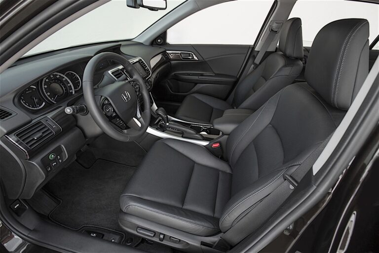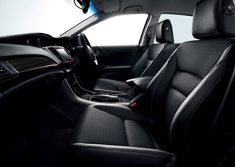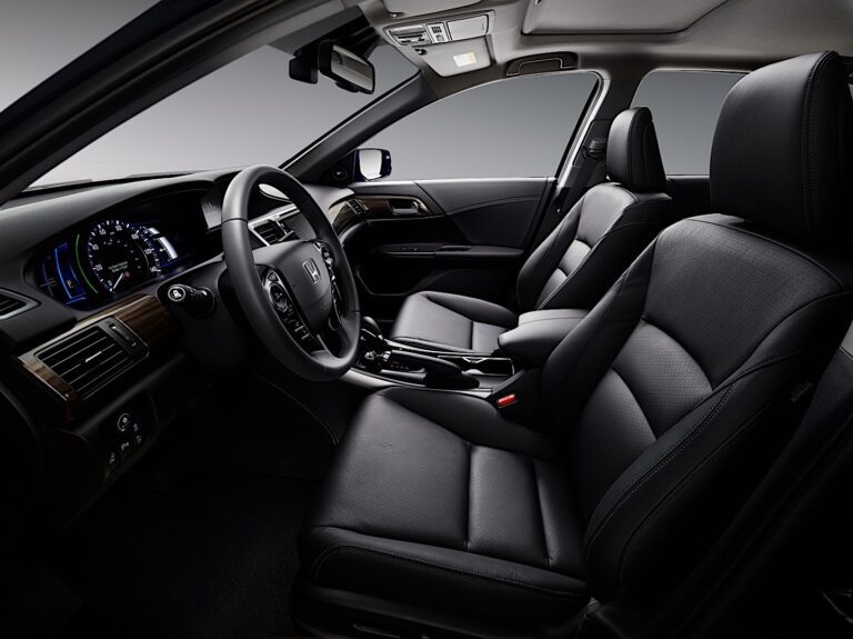 We wnętrzu Accorda wszystkie powierzchnie dotykowe, od uchwytów drzwi wewnętrznych po kontrolki siedzeń, panel wskaźników, kierownicę i przełączniki, są zaprojektowane z myślą o przyjemności dotyku – i łatwości obsługi. Górna część panelu wskaźników jest teraz jednym seamless (jednolitym) kawałkiem materiału miękkiego w dotyku, stworzonym w nowym procesie produkcji wewnętrznej Hondy. Ta miękka górna część ma lepsze dopasowanie, luksusowe wykończenie i zintegrowaną osłonę poduszek powietrznych po stronie pasażera. Standardowe tapicerowane siedzenia w Accodzie wykonane są z weluru, podczas gdy wersje EX cechują się ulepszonym materiałem tricot. Wersja Sport ma siedzenia z materiału z skórzanymi wstawkami dla przednich siedzeń. W wersjach EX-L i Touring standardem są powierzchnie siedzeń ze skóry.