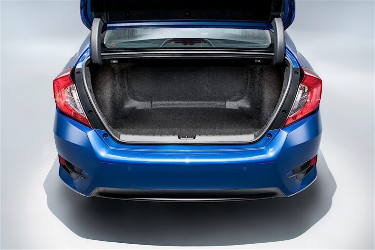 Civic Sedan ma pojemność bagażnika wynoszącą 15,1 stopy sześciennej – 2,6 stopy sześciennej większą niż w poprzednim modelu i jedną z największych w klasie konkurencyjnej. Wystarczająco przestronny, by pomieścić cztery duże torby golfowe, nowy obszar bagażnika jest łatwiejszy do dostępu i użytkowania, z niższą wysokością wznoszenia i szerszym otworem. Civic LX ma jednoczęściowe tylne oparcie, podczas gdy wersje EX i wyżej mają 60/40 dzieloną oraz składane tylne oparcie. Kształt przejścia bagażnika jest teraz bardziej prostokątny, z 20-procentowym zwiększeniem powierzchni.