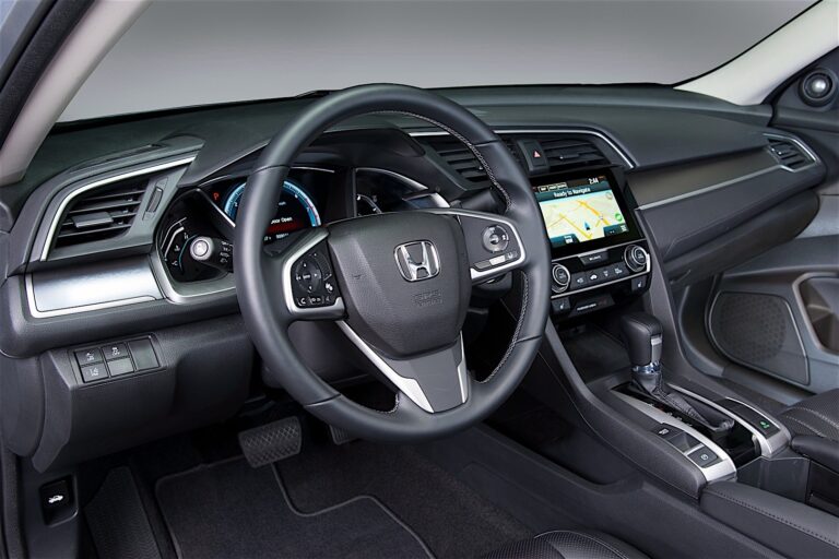 Nowe wnętrze Civica podnosi jakość najtańszej limuzyny Hondy na nowy poziom z wysokiej jakości detalami i upscale materiałami szeroko zastosowanymi w całym wnętrzu. Wyjątkowe cechy to miękka powierzchnia górna deski rozdzielczej, szwy paneli podłokietników oraz miękkie górne panele drzwiowe. Dopasowanie, wykończenie i materiały zostały starannie opracowane, a miękkie skórzane siedzenia są standardem w wersjach EX-L i Touring.