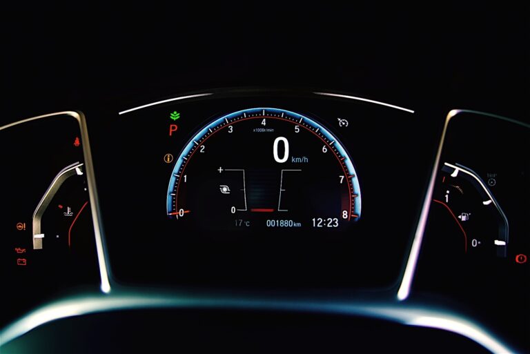 Deska rozdzielcza Civica dostarcza ważne informacje o pojeździe za pomocą Interfejsu Informacji dla Kierowcy (DII) umieszczonego centralnie na panelu wskaźników. Sterowniki umieszczone po prawej stronie kierownicy pozwalają kierowcy przeskakiwać przez wyświetlacz DII, aby przechodzić przez różne ekrany informacji z różnych źródeł, w tym LKAS, ACC i więcej, gdy są dostępne. System Maintenance Minder™ informuje kierowcę Civica o nadchodzących potrzebach konserwacyjnych za pomocą DII, a w przypadku wystąpienia usterki w pojeździe, pojawi się konkretna informacja o ostrzeżeniu. Wyświetlacz wskazuje, kiedy należy wymienić olej, filtr powietrza, płyn przekładniowy, świeczki zapłonowe lub płyn chłodzący, a także kiedy należy obrócić opony.
