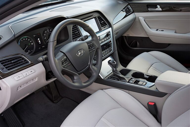 Hyundai nie wprowadził istotnych zmian w kabinie modelu Sonata Plug-in Hybrid z 2016 roku w porównaniu do modelu benzynowego z 2015 roku. Wnętrze wyposażone było w skórzaną tapicerkę oraz standardowy pięciocalowy ekran dotykowy systemu informacyjno-rozrywkowego, umieszczony na szczycie centralnej konsoli. Panel instrumentów przed kierowcą miał inny interfejs graficzny dla małego wyświetlacza komputera pokładowego, a przy uruchamianiu samochód emitował specyficzny dźwięk. Opcjonalnie dostępny był panoramiczny szklany dach oraz większy, ośmiocalowy wyświetlacz do systemu nawigacji. Przestrzeń na nogi i nad głową była identyczna jak w wersji niehybrydowej. Była także różnica w przestrzeni bagażowej – hybryda miała ją mniejszą ze względu na akumulator litowo-polimerowy o pojemności 9,8 kWh, zainstalowany pod podłogą bagażnika. Mimo to, wciąż była wystarczająco duża jak na ten segment.