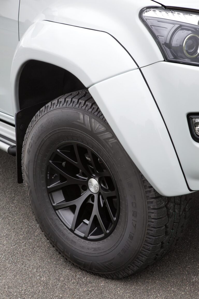 Specjalne opony Nokian Rotiiva AT do jazdy w terenie zapewniają AT35 lepszą przyczepność w najbardziej śliskich warunkach. Te ogromne opony o średnicy 35 cali są specjalnie zaprojektowane do jazdy w terenie i są zamontowane na obręczach aluminiowych 17” x 10”, znacznie większych niż te w standardowym D-Maxie. Pojazd pomieści większe opony i obręcze w dramatycznie poszerzonych nadkolach, nadając AT35 pewny i mocny wygląd.