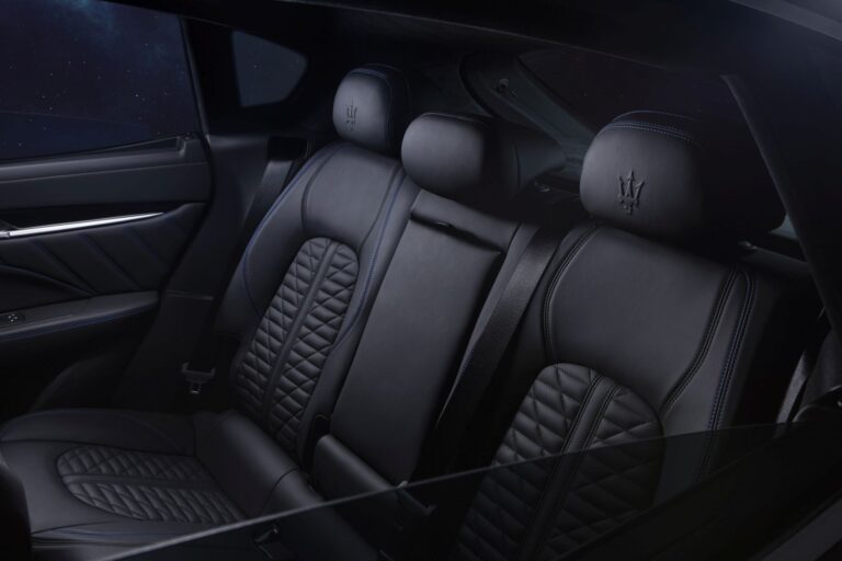 Tylny słupek jest wzbogacony o charakterystyczne logo „Saetta”, po raz pierwszy zaprezentowane w ikonicznym modelu Quattroporte w 1963 roku, i płynnie podąża za kształtem bocznych okien.