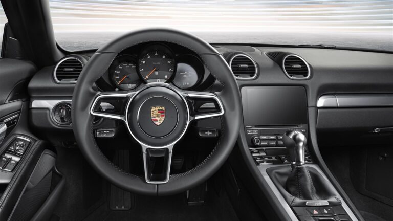 W kokpicie 718 Boxstera czeka znajome wnętrze Porsche, teraz wzbogacone o nowe elementy, takie jak panel instrumentów. Innym centralnym elementem nowego układu wnętrza jest jednostka Porsche Communication Management (PCM) z przygotowaniem do telefonu komórkowego, interfejsami audio oraz pakietem Sound Plus o mocy 110 watów. PCM można rozszerzyć o opcjonalne moduły, aby w pełni dostosować je do osobistych wymagań. Na przykład dostępny jest moduł nawigacji z obsługą głosową, który ułatwia wprowadzanie celów podróży. Ponadto dostępny jest moduł Connect Plus jako rozszerzenie modułu nawigacji, który zapewnia rozszerzone usługi online.