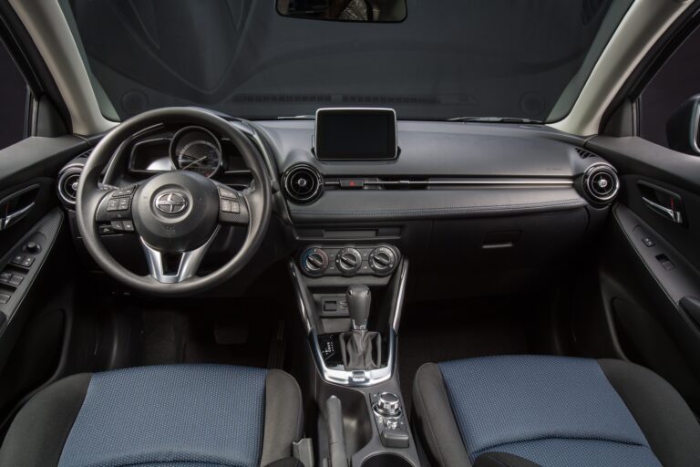Wnętrze iA było zaskakująco przestronne jak na swoją klasę, przynajmniej dla pasażerów z przodu. Mieli oni przed sobą zakrzywioną deskę rozdzielczą, w której Scion standardowo umieścił ekran dotykowy systemu multimedialnego pochodzący z Mazdy, z pokrętłem pomiędzy przednimi siedzeniami. Z tyłu, kanapa ledwo pomieściła trzy osoby z powodu centralnego tunelu. Bagażnik z kolei był dość przestronny jak na segment tego samochodu.