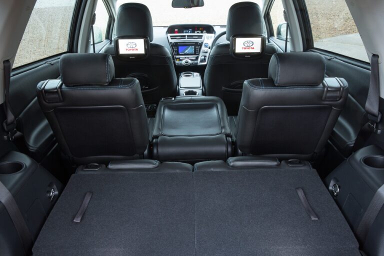 Po złożeniu tylnych siedzeń dzielonych w proporcji 60/40, Prius v oferuje 67.3 cu. ft. przestrzeni ładunkowej. Rzeczywiście, połączenie przestronnej kabiny i strefy ładunkowej daje Prius v klasyfikację „średniej wielkości kombi” według EPA. Niski, szeroki bagażnik zapewnia łatwy dostęp, a składane siedzenie pasażera z przodu umożliwia przewożenie długich przedmiotów. Dodatkowo, przesuwne tylne siedzenia pozwalają dostosować przestrzeń dla pasażerów lub ładunku.