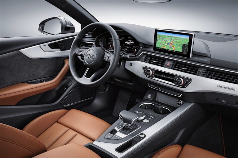 Audi zostało skrytykowane przez swoich fanów za wnętrze pierwszej generacji A5. W związku z tym druga iteracja tego modelu wprowadziła znaczące usprawnienia w kabinie. Kierowca miał przed sobą nowy zestaw wskaźników z analogowymi tarczami prędkościomierza, obrotomierza, poziomu paliwa i temperatury płynu chłodzącego. Jako opcję klienci mogli zamówić pojazd z Audi Virtual Cockpit, który zastępował panel instrumentów wysokiej jakości wyświetlaczem wielofunkcyjnym, obejmującym wszystkie powyższe informacje oraz dodatkowe bezpośrednio na ekranie przed kierownicą. Z tyłu zwiększono przestrzeń na nogi, ale wysokość nad głową wciąż była problemem dla wyższych dorosłych podczas dłuższych podróży.