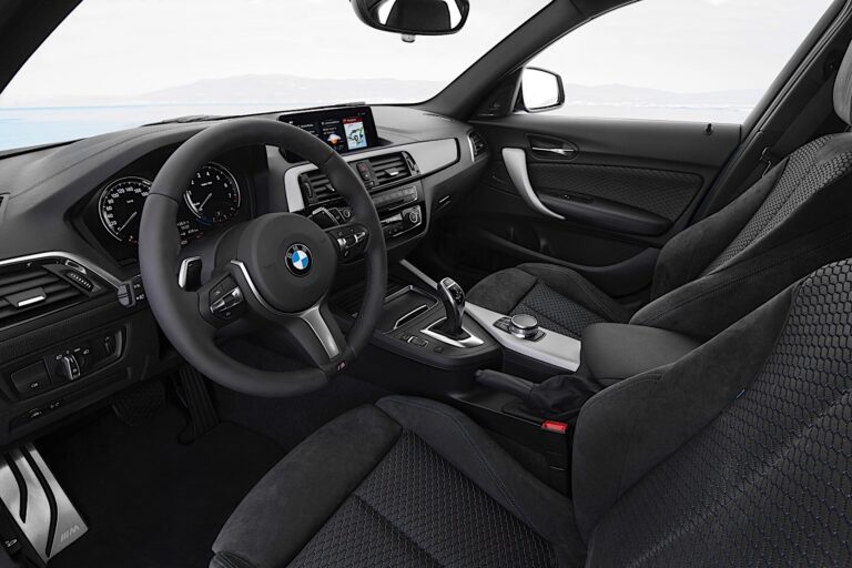 We wnętrzu BMW przeprojektowało deskę rozdzielczą w pięciodrzwiowej serii 1 z 2017 roku. Dodatkowo, oferowano nowe materiały tapicerskie oraz kontrastowe przeszycia. Znaczną poprawę wprowadzono w systemie infotainment iDrive. Po raz pierwszy w serii 1, producent zainstalował 8,8-calowy ekran dotykowy na szczycie konsoli centralnej. Była to cecha, której żądali wielu klienci, ale producent twierdził, że ekran był zbyt daleko, by był użyteczny. Pomimo tego, zdecydował się go wprowadzić. Niestety, nie udało się poprawić miejsca na nogi dla pasażerów z tyłu. Nadal siedzieli na standardowej kanapie 60/40 z opcją podziału 40/20/40, co mogło zwiększyć przestrzeń bagażową.