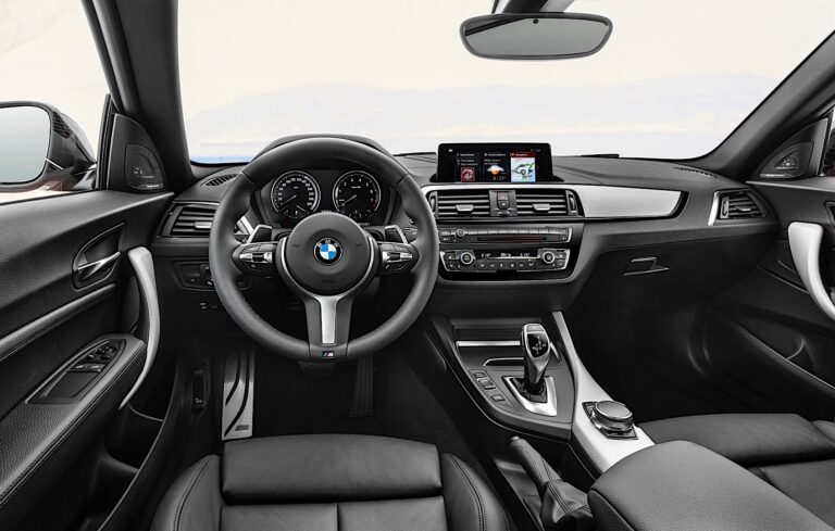 Wewnątrz klienci mogli zamówić pojazd z wygodnymi fotelami kubełkowymi pokrytymi tkaniną lub sportowymi siedzeniami z skórzaną tapicerką. Kierowca miał przed sobą analogowy zestaw wskaźników z dużymi tarczami dla obrotomierza i prędkościomierza, które flankowały kolorowy wyświetlacz dla różnych informacji dostarczanych przez komputer pokładowy. Dodatkowo, BMW zainstalowało 8.8-calowy ekran dla systemu multimedialnego, którym pasażerowie z przodu mogli sterować za pomocą znanego pokrętła systemu iDrive. W 2017 roku w serii 2 producent zainstalował zaktualizowaną jednostkę multimedialną, która umożliwiała klientom lepsze połączenie z ich pojazdami za pomocą zintegrowanej karty SIM dla usługi BMW ConnectedDrive. Co więcej, jednostka nawigacyjna oferowała informacje o ruchu drogowym w czasie rzeczywistym. Ostatnim punktem była łączność z Apple CarPlay, ale brakowało Android Auto. Z tyłu znajdowało się kanapa profilowana dla dwóch osób, ale z bardzo ograniczoną przestrzenią na nogi. Pojemność bagażnika pozostała taka sama jak w wersji bez faceliftingu i wynosiła 390 litrów (13.7 cu-ft.).