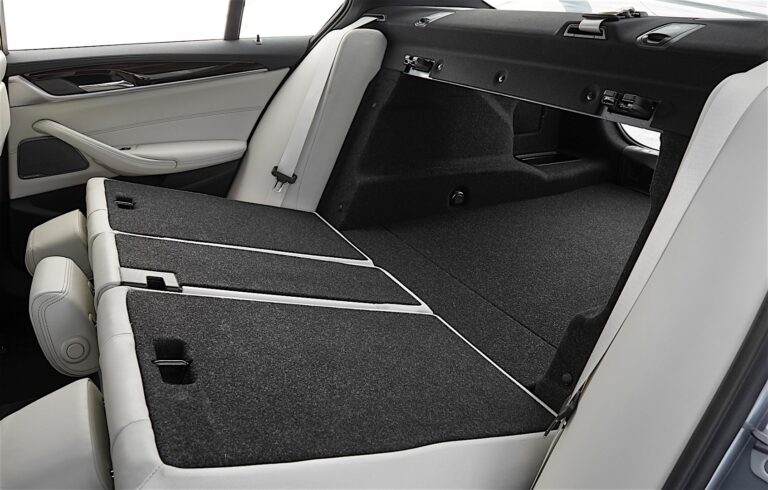 Nowy BMW 5-Series Sedan może pochwalić się większym bagażnikiem o pojemności 530 litrów. Krawędź bagażnika została obniżona w porównaniu do swojego poprzednika, co w połączeniu z większym otwarciem bagażnika oraz znacznie zwiększoną szerokością zapewnia łatwiejsze załadunek nawet większych przedmiotów niż kiedykolwiek wcześniej. Pojemność bagażnika można zwiększyć dzięki opcjonalnemu systemowi załadunku przez środek, który pozwala złożyć tylną kanapę na płasko w proporcji 40:20:40. Opcjonalnie dostępna jest również funkcja automatycznego otwierania i zamykania, która jest uruchamiana za pomocą klucza lub starannie wymierzonego ruchu nogi, gdy stoi się z tyłu samochodu.