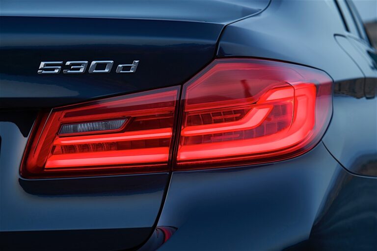 Nisko osadzony, ekspresyjny i uwydatniający szerokość design tyłu wskazuje na dynamiczne, bezpośrednie prowadzenie nowego BMW 5-Series Sedan. Lampy tylne sięgają głęboko w boki samochodu, tworząc wizualne połączenie między bokami a tyłem. Nowoczesne paski LED umożliwiają smukłą interpretację charakterystycznego kształtu „L” BMW i podkreślają szerokość nowego sedana. Inne wyróżniające elementy tyłu to rury wydechowe, które są teraz symetrycznie umiejscowione po obu stronach we wszystkich wariantach. W zależności od silnika i określonego pakietu wyposażenia, rury wydechowe będą okrągłe, trapezoidalne lub prostokątne i w zestawie czterech.