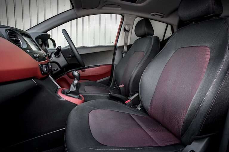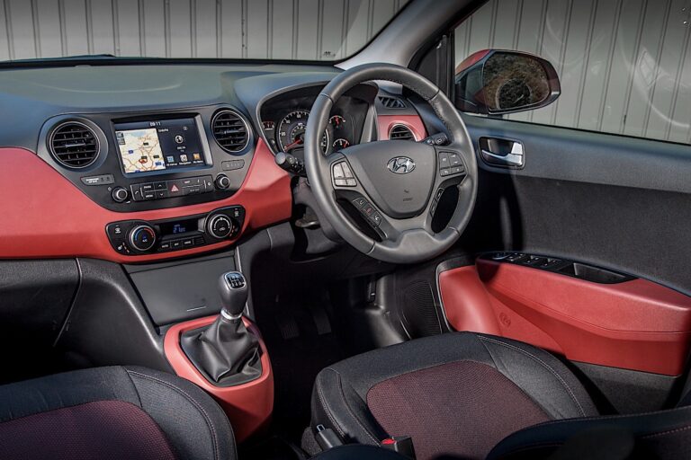 Wnętrze nowego i10, od poziomu SE wzwyż, teraz dostępne jest z darmową opcją czerwonych lub niebieskich wykończeń wnętrza obok standardowego czarnego materiału.