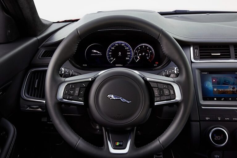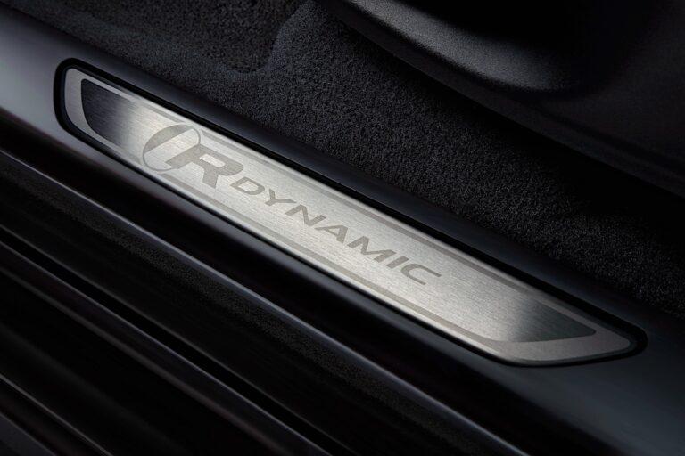 Specyfikacja modelu R-Dynamic podkreśla sportowy charakter Jaguara, oferując fotele sportowe z wykończeniem w kontrastowych kolorach oraz podsufitkę z materiału Jet Morzine. Szczotkowane stalowe progi i pedały łączą się, aby stworzyć wnętrze skupiające się na sporcie, a miękka skórzana tapicerka na kierownicy z logo R-Dynamic i dodatkowe łopatki do zmiany biegów zapewniają dodatkowe korzyści.