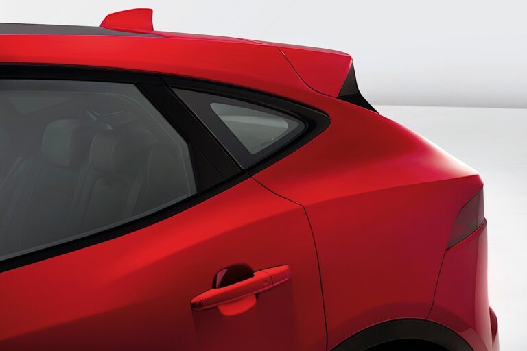 Krótkie zwisy przedni i tylny umiejscawiają wielkie koła w każdym rogu, a łzyowata grafika bocznych okien, inspirowana F-Type, nadaje najnowszemu członowi rodziny PACE zdecydowaną sylwetkę. Przedni widok kompaktowego SUV-a ukazuje pewną, asertywną twarz, która podkreśla wspólne DNA z samochodami sportowymi Jaguara.