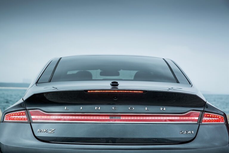 W profilu samochód prezentował się jak czterodrzwiowy coupe, z opadającą linią dachu i wysokim tyłem. Dodatkowo, wznosząca się linia przerywana wizualnie łączyła reflektory z lampami tylnymi, przerywana przez klamki drzwi. Nawet dolna, rzeźbiona linia na drzwiach podążała za wznoszącym się trendem, podkreślając sportowy charakter pojazdu. Klienci Lincolna przyciągani byli bardziej komfortem i luksusem niż osiągami. Z tyłu znajdował się spojler w stylu „ducktail” na klapie bagażnika, a diodowe lampy tylne przypominały klejnoty i rozciągały się od jednego boku do drugiego. Na dolnej części zderzaka 2017 Lincoln MKZ miała środkowy element przypominający dyfuzor, otoczony szerokimi, prostokątnymi końcówkami wydechu, w zależności od wersji.