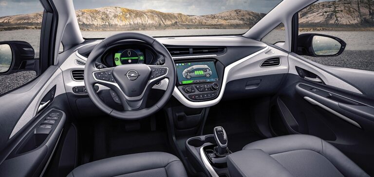 Elektryczny samochód Opla jest idealnym rozwiązaniem w naszej erze cyfrowej: niezbędne operacje są wykonywane za pomocą indywidualnie konfigurowanego, przypominającego tablet, kolorowego monitora o przekątnej 10,2 cala. Wszystkie istotne informacje dotyczące pojazdu lub warunków zewnętrznych można wyświetlić tutaj. System infotainment IntelliLink-e może integrować kompatybilne smartfony za pośrednictwem Apple CarPlay™ i Android Auto™. Mogą być ładowane nawet bez użycia kabla dzięki ładowaniu bezprzewodowemu. Oczywiście dostępne są również funkcje takie jak sterowanie głosowe, interfejsy USB i Bluetooth. Miłośnicy dźwięku w Ampera-e mogą również zamówić system audio Bose z subwooferem – prawdziwa przyjemność w super-cichym elektrycznym samochodzie.