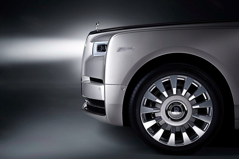 Ostatecznym wyrazem wizualnym Phantoma są jego koła, które oczywiście muszą zachować złoty środek proporcji wzornictwa Rolls-Royce’a. Kluczowe dla zapewnienia wrażenia lotu po lądzie jest największe kółko o wysokiej wartości, jakie kiedykolwiek zastosowano w Rolls-Royce. Przy średnicy 22 cali, kiedy zamontowane w oponach Rolls-Royce’s Seal Technology Tyres, dostarczają one doświadczenia Magic Carpet Ride, jakiego nigdy wcześniej nie doświadczono w Rolls-Royce.