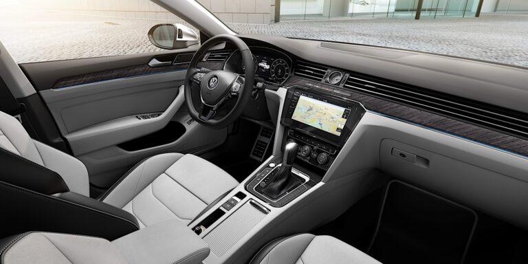 Z przodu kierowca i pasażer z przodu korzystają z doskonałego pakietu oferowanego przez Modularną Transwersalną Macierz (MQB); dużo przestrzeni tworzonej przez silnik zamontowany poprzecznie i przednią oś, która jest przesunięta do przodu. Długi rozstaw osi wynoszący 2841 mm jest zatem wykorzystany, by stworzyć bardzo przestronną premium klasę dla pasażerów z tyłu. Proszę zauważyć przestronność na nogi, na przykład: wartość 1016 mm uzyskana tutaj jest najlepsza wśród konkurencji. Wysokość miejsca na głowę z tyłu jest również doskonała dzięki długiemu dachowi. Druga linia siedzeń jest wyposażona w trzyosobową tylną kanapę. Dwa boczne miejsca mają wizualny i ergonomiczny charakter siedzeń indywidualnych.