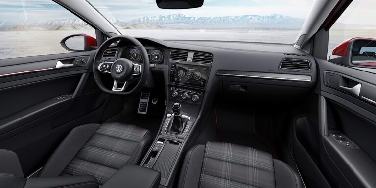 Sportowe wersje GT wyróżniają się kolorowymi akcentami, które odpowiadają charakterowi konkretnej wersji Golfa, zamiast chromowanej listwy w grillu i reflektorach. Jednym z najważniejszych symboli Golfa GTI – czerwona listwa w grillu – została wydłużona jako jeszcze bardziej charakterystyczny element. Poprzeczka w grillu oraz małe skrzydełka po bokach standardowych podwójnych reflektorów LED są również czerwone. Tył Golfa GTI na rok 2017 wyróżnia się nie tylko nowymi zderzakami i pełnymi LED-owymi światłami tylnymi, ale także powiększonym przekrojem chromowanych rur wydechowych.