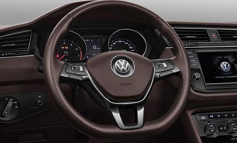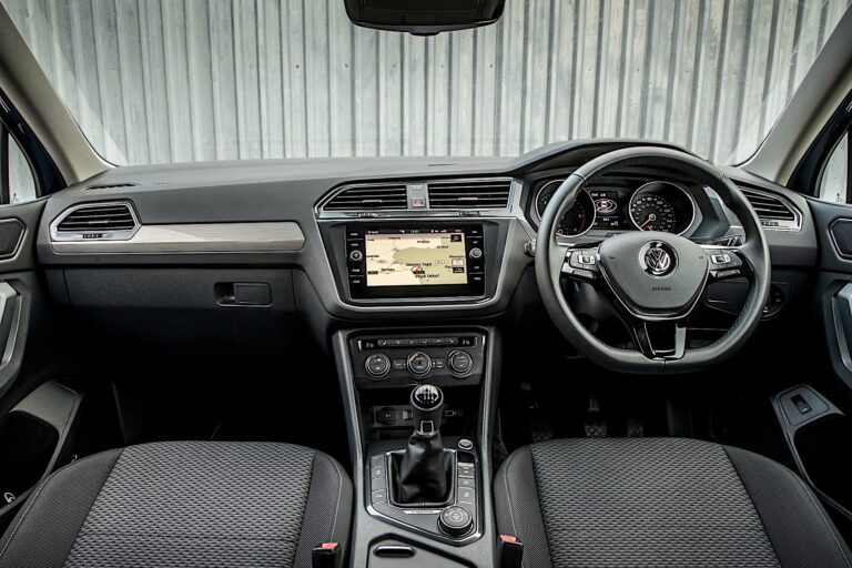 Wnętrze Tiguana zostało przemyślane i odświeżone; nawet materiałowe siedzenia modeli podstawowych mają teraz wzór w romby, który nadaje im premium wygląd. Tiguan oferuje teraz opcjonalny wyświetlacz Volkswagen Digital Cockpit, który pozwala kierowcom na konfigurowanie wyświetlanych kluczowych danych oraz na umiejscowienie danych nawigacyjnych na środku, co ułatwia ich przeglądanie. Dostępny system Volkswagen Car-Net® oferuje zestaw usług związanych z połączonym pojazdem, w tym standardową technologię App-Connect, która oferuje integrację z kompatybilnymi smartfonami z trzema głównymi platformami – Apple CarPlay™, Android Auto™ i MirrorLink®. Nowy Tiguan oferuje także dostępny system audio Fender® Premium.