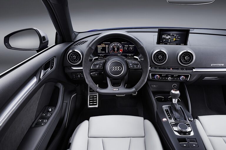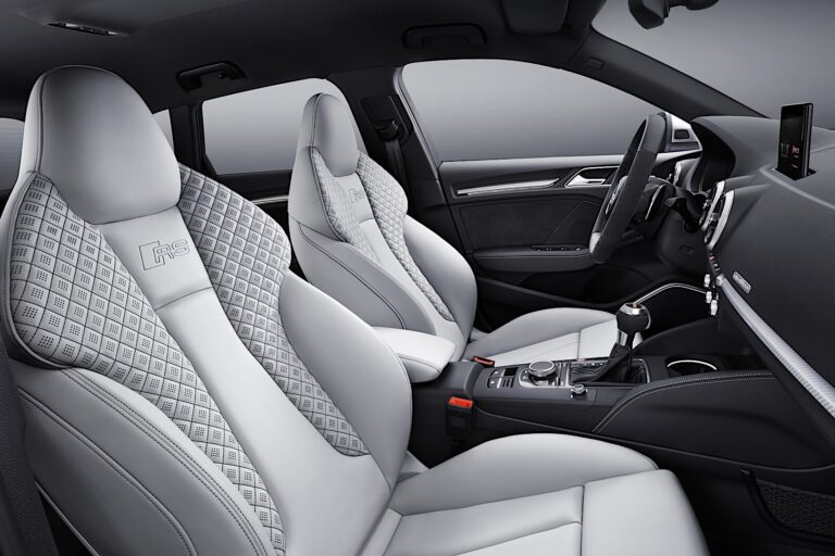 Audi RS3 Sportback standardowo wyposażono w sportowe fotele z czarnej skóry Nappa. Opcjonalnie dostępne są fotele sportowe RS o bardziej konturowych profilach i zintegrowanymi zagłówkami dla kierowcy i pasażera. Emblematy RS zdobią oparcia obu wariantów siedzeń. Sportowa skórzana kierownica RS ma płaski spód i przyciski do obsługi systemu multimedialnego. Głównym elementem sterującym jest pokrętło/wyłącznik na konsoli centralnej. Opcjonalnie można zintegrować w jego powierzchni touchpad, umożliwiający kierowcy przewijanie, powiększanie i wprowadzanie tekstu. Zawiera również funkcję wyszukiwania tekstu, która automatycznie uzupełnia wprowadzone dane po wpisaniu zaledwie kilku liter. System głosowy może przetwarzać pytania i polecenia sformułowane w codziennym języku.