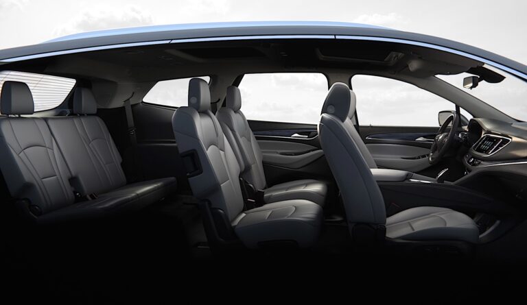 W wizualnie niższej i smuklejszej sylwetce Enclave ma więcej miejsca wewnątrz. Sam trzeci rząd oferuje o 5,6 cala więcej standardowej przestrzeni na nogi niż Acura MDX, o 4,5 cala więcej niż Audi Q7 i prawie o trzy cale więcej niż Infiniti QX60. Nowy Enclave ma również dłuższy rozstaw osi niż poprzednia generacja, a jego promień skrętu jest o 1,4 stopy mniejszy niż wcześniej, łącząc potrzebną przestrzeń z większą zwrotnością.