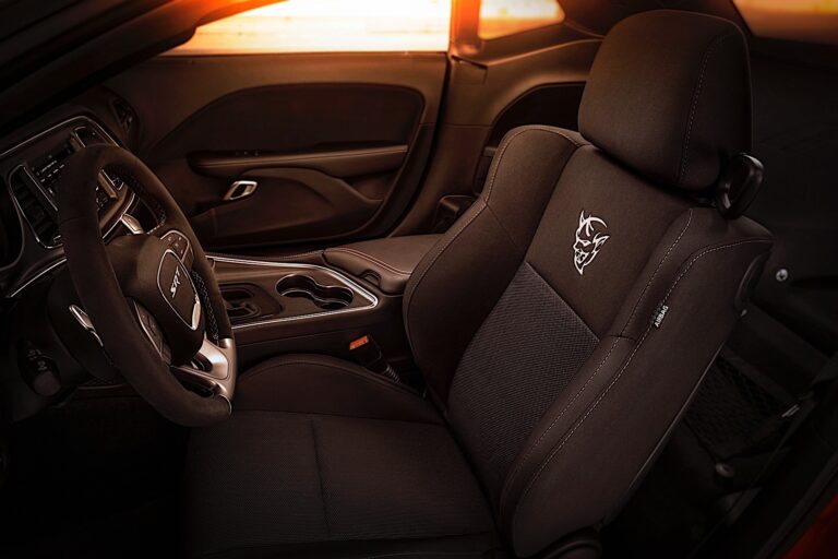Standardowe fotele z materiału obejmują wstawki Ballistic II z wyszywanym logo Demona na oparciach. Opcjonalny pakiet Laguna Leather obejmuje fotele pokryte skórą i wykończenia z wytłoczonym logo Demona.