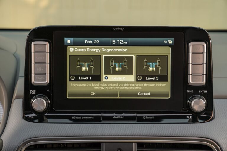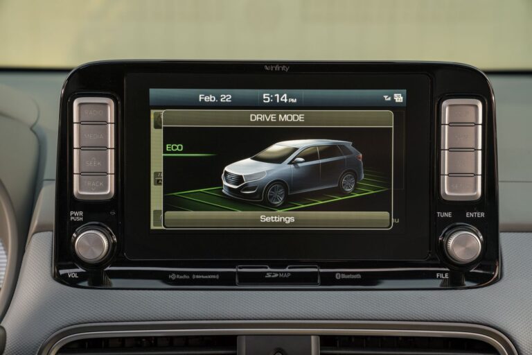 Kona Electric oferuje pełny zestaw zaawansowanych technologii połączonych z łatwą w użyciu funkcjonalnością, aby utrzymać pasażerów na bieżąco i w rozrywce. Premium system infotainment oferuje różne zaawansowane funkcje łączności, w tym standardową obsługę Android Auto™ i Apple CarPlay™, radio SiriusXM®, radio HD oraz łączność nowej generacji Blue Link® z LTE. Standardowy siedmio-calowy wyświetlacz LCD w kolorze obejmuje audio AM/FM/MP3 z wyświetlaczem dotykowym, wejścia pomocnicze, rozpoznawanie głosowe oraz monitor tylny. Dostępny ośmio-calowy wyświetlacz nawigacji z ekranem dotykowym obejmuje łączność nowej generacji Blue Link, dane o ruchu i incydentach za pośrednictwem radia HD, premium audio Infinity® z ośmioma głośnikami, subwooferem i technologią Clari-Fi ™ przywracania muzyki. W systemie premium uwzględniono również integrację ze smartfonem.